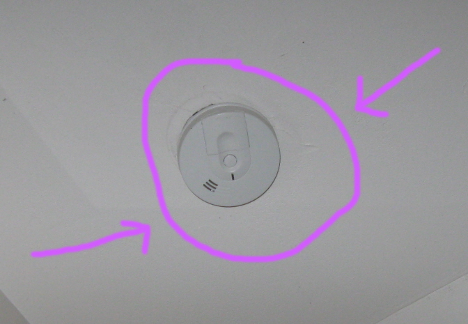 Shut the fuck up. The smoke detector battery needs replacing. The smoke detector is located in the hardest-to-reach corner of my high ceiling. Its cover has been hanging by an electrical cord since the last time I replaced the battery because I got exasperated standing on top of a rickety step ladder reaching above my head trying to align the cover with the screw heads that hold it in place.