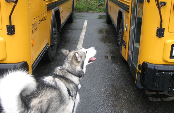 Teachers and students were nowhere in evidence all summer, but there’s been activity a-plenty at the school. Trav and I have monitored it on our walks. The whole sprawling building has been reshingled, and many of the windows have been replaced. The back parking lot has been given over to storage units, dumpsters, and vehicles involved in the refurbishing. A chain-link gate blocked vehicle access to the lot. By Sunday morning the gate had been dismantled. Could the buses be far behind?