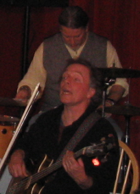 Paul Thurlow sings; behind him is Brian Weiland on percussion.