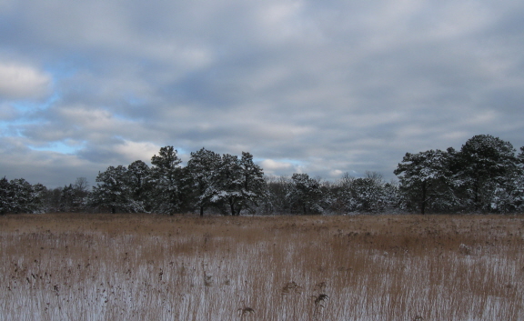Given the extra effort of walking in snow, I thought to abridge our route by cutting through the Nat’s Farm subdivision, but no: walking through snow that no one has walked through before was too tempting, and the sky was moodily beautiful. We trudged on. Trav pounced on little critters moving in the grass and missed all of them. I gawked at the sky and took the occasional picture. Winter really is here.