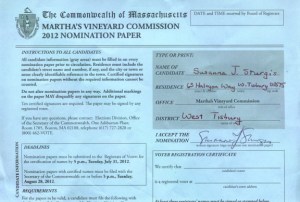 One month to the day after I picked up the instructions and a blank petition (see “Rumor Control” for the backstory), I filed my nomination papers to run for the Martha’s Vineyard Commission (MVC). This required a trip to Town Hall. The town clerk doesn’t come in on Thursday, but her assistant skimmed my petition and duly stamped it at the top with Thursday’s date.