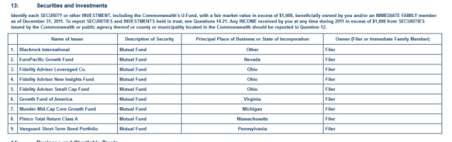 So as of the end of 2011 (the period stipulated by the SFI) these were my financial interests: