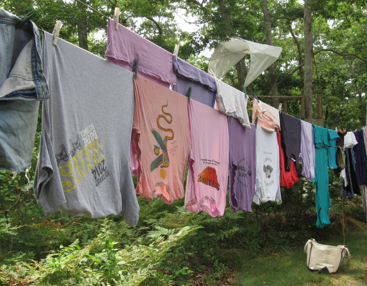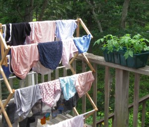 A couple of hours after I hung the wash out, a few drops fell out of the sky. I was proofreading out on the deck, but I wasn’t fooled. I didn’t come in and neither did my laundry. The rain stopped.