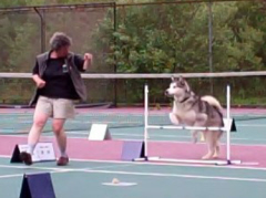 I see that your private training space is a tennis court. Well done and bravo! We have a neighborhood court near my house in MD and I took Fenway there as a puppy for some safe off leash romping. I use it now for Rally training just like you and Travy. I find the court lines very helpful for marking out turns, etc. and the nets are a good aid for practicing the straight back up 3 steps sign in AKC Rally. Tennis courts are GREAT! Happy training from me and Fenway!