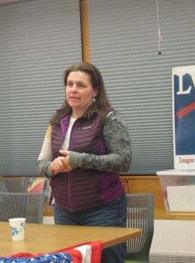 Katherine Triantafillou, running for re-election to the finance committee, spoke about what the fincom does: basically they review every article that appears on the town meeting warrant, and if it involves spending money (as many warrant articles do), they examine its implications for the rest of the town budget and the tax rate. Gary Montrowl, also running for re-election, wasn’t able to be present. Since there are two seats open, they’ll both be re-elected.