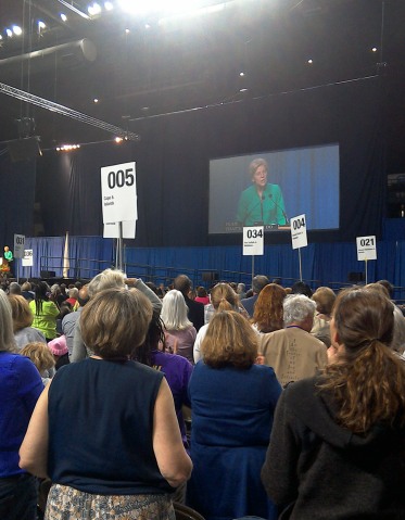 The convention wasn’t particularly well run. I didn’t get my badge until Thursday, and if the agenda says the platform discussion is going to start at noon, it shouldn’t start at two thirty. The breakout sessions that were supposed to start at three never happened, which is too bad because they were about practical organizing and could have been genuinely useful, unlike most of the post-noon speeches and most of the amendment process.
