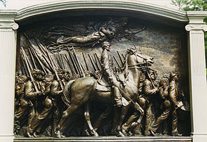 In contrast, a monument to Robert Gould Shaw and the 54th Massachusetts stands outside the Massachusetts statehouse on Beacon Hill. It was erected in 1884. It’s a tourist attraction, but it hasn’t been a rallying point for any political perspective, not even after the 1989 film Glory made the 54th Massachusetts famous.