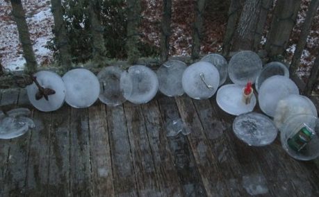 As 2017 turned into 2018, the weather stayed so cold for so long that I accumulated 15 ice disks on my little deck, breaking the previous record of 13, set in February 2015.
