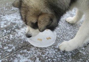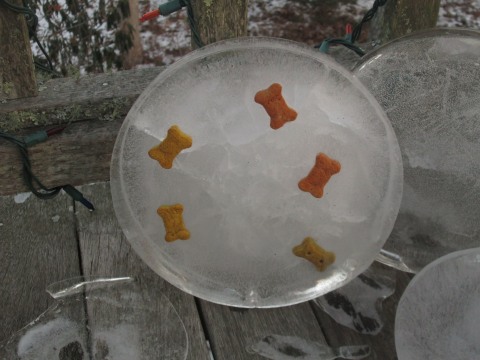 One night I had the bright idea of putting a few dog biscuits in the dish before the water froze.