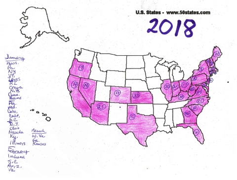 A short list but a good ‘un. Georgia isn’t a big deal, but the East Coast is now complete except for the usual holdout, Delaware. West Virginia I spotted while cruising through the hospital parking lot — always worth a detour, even in the off-season — and Kansas?