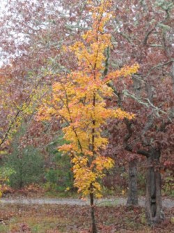 On Martha’s Vineyard, fall foliage is often underwhelming, probably because the landscape is dominated by oaks. Oaks seem to go from green to brown overnight: blink and you missed it. But some years the maples, beetlebungs, birches, and beeches do more than hold their own: the oaks glow in their proximity. This might be such a year. I remember one year, probably a couple decades ago, when driving down Old County Road was like passing through a golden tunnel. This year isn’t quite as breathtaking as my memory, but it’s closer than I’ve seen in years.