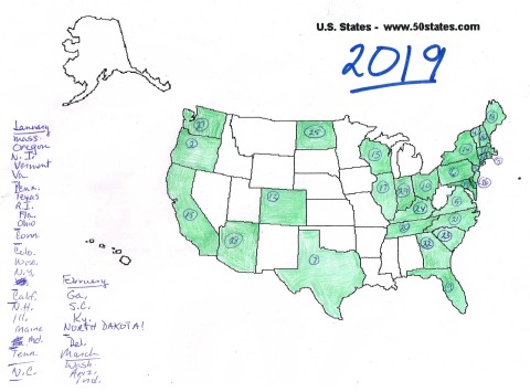 Only three new sightings in March, but they were good ones. Washington state finally showed up, so the West Coast is now complete. With Indiana the eastern third of the country is getting closer to completion, and (sneak preview!) I spotted West Virginia on April 2, so one of the remaining holes is how filled up. Where are you, Michigan?