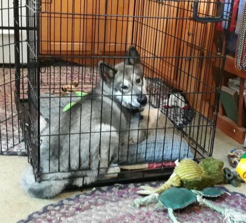 Big puppy in his crate, August 25