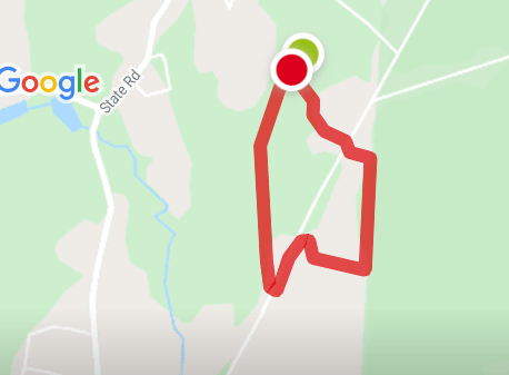 Our route looks sort of like someone reclining on the beach with one leg bent. For some reason my phone logged 2.5 miles and Carla’s logged 2.47.