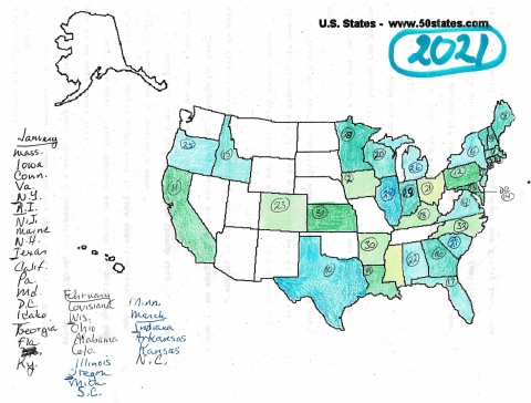 I can’t believe I’ve been playing the license plate game for more than 30 years, and blogging about it for (OMG!) 15 YEARS. I started recording my sightings on my website (www.susannajsturgis.com) on January 2, 2006 (I just looked it up), then moved it to this blog in January 2012.