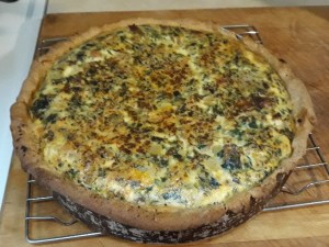 As I write, we’re on the fringes of Tropical Storm Henri. The wind is blowing, there’s been some rain, but so far, so good. The electricity flickered a couple of times before 7 but I went ahead and made the quiche I’d been hankering for. It came out of the oven 15 minutes ago. I’m calling it quiche Henri.