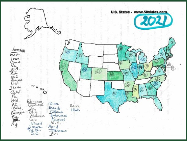 What’s unusual about this map is how solid the Southwest is this early in the year. Nevada, Utah, New Mexico, and Oklahoma tend to be late arrivals, and in 2020 Utah and Oklahoma didn’t show up at all. In 2021 the eastern half of the country was almost all present and accounted for — only Tennessee, West Virginia (surprise, surprise), and Delaware were missing. This year? All four states south of Minnesota are still blank, and there are plenty of other holes in the eastern Midwest and South.