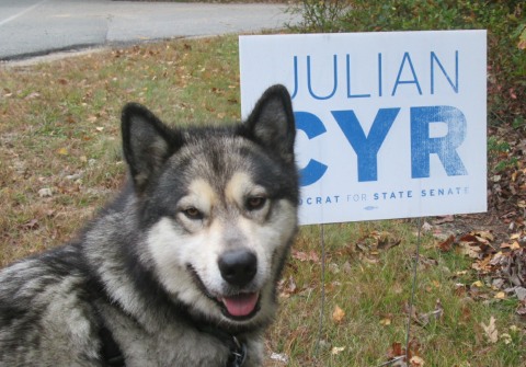 I posted my “Pre-Election Prep Talk” a couple of weeks ago. If you read it, you will recognize the dog in the photos below. (His name is Tam Lin, and he’s a popcorn junkie.) The short version: Please vote Democratic from the top of the ballot to the bottom, and that includes the six candidates on the ballot for Dukes County Commission. I’ll recap my statewide and regional picks below.