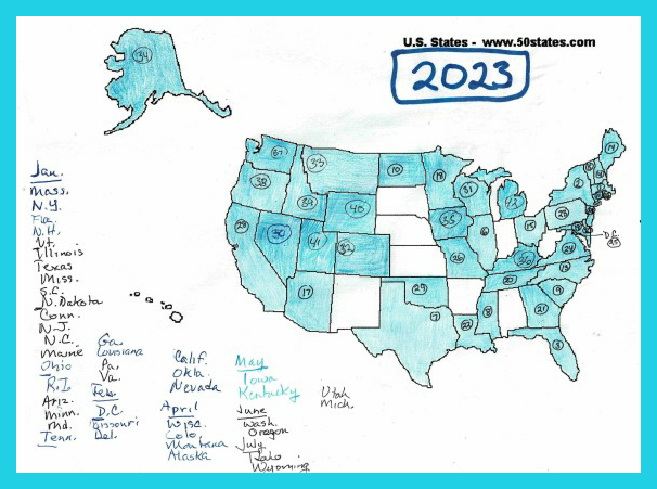 As Julys go, this was a good one. Hell, as 2023 goes, July was a good month: four new sightings met the bar set by April and equaled the total for May and June: Idaho, Wyoming, Utah, and Michigan. See how solid the West is looking! (OK, I haven’t got Hawaii yet, but that’s sort of in a category by itself.)
