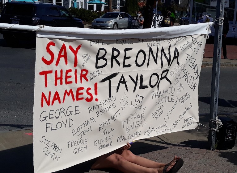 Tam Lin came along too, and since this was totally new territory for him, he did plenty of sniffing. This may explain why I clocked 0.03 more miles than Carla did. No idea how many steps add up to 0.03 miles, but as the Run for RBG website says, quoting the lady herself: “Real change happens one step at a time” — and every step counts.
