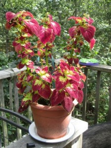 My two coleus plants, on the other hand, did wonderfully. I love coleus, the way it catches the light at different times of day out on my deck railing.