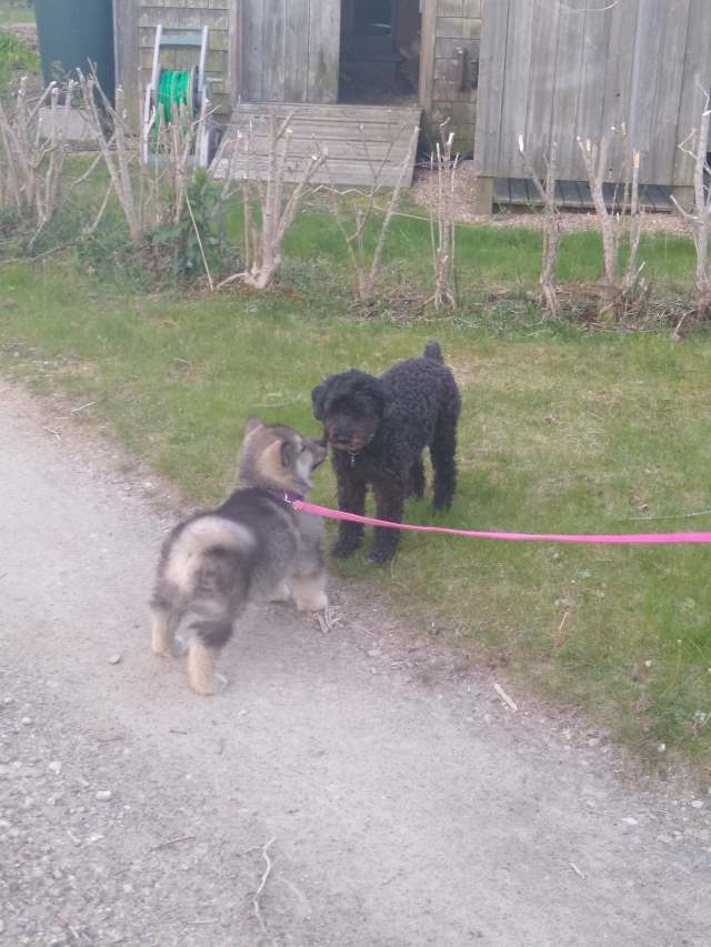 From attending an intro “How to Raise a RockStar Puppy” workshop given by trainer Karen Ogden and studying Dr. Sophia Yin’s excellent Perfect Puppy in 7 Days: How to Start Your Puppy Off Right I learned that “socialization” is about much more than getting the pup used to other dogs. It involves introducing the pup to all kinds of experiences and sensations, and creating positive associations with them.